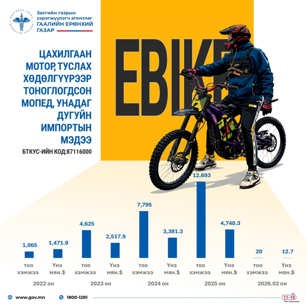 2022 онд 1065 ширхэг байсан импорт 2025 онд 12693 ширхэгт хүрч, 3 жилийн хугацаанд 10 дахин өссөн үзүүлэлттэй байна. Үнийн дүн мөн 1.47 сая ам.доллараас 4.74 сая ам.доллар болж нэмэгдсэн байна. Тодруулбал,