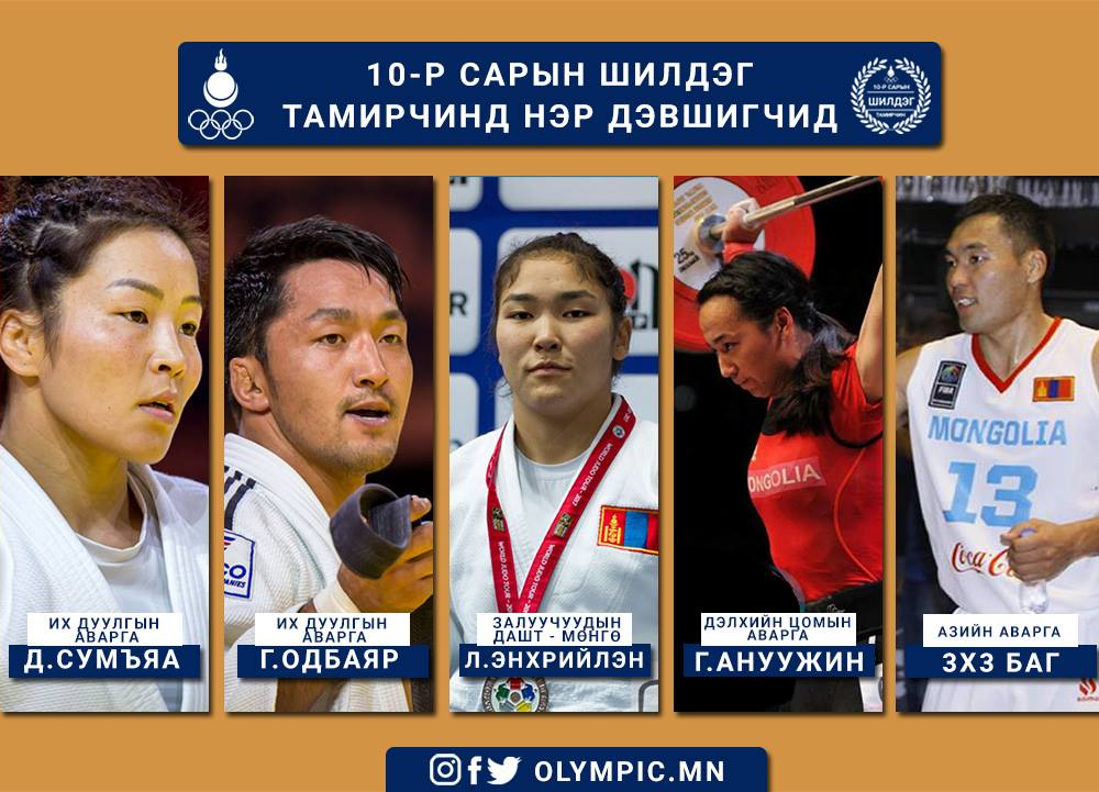 10-р сард үзүүлсэн амжилтаараа манлайлж, олон улсын тавцанд эх орныхоо нэрийг мандуулсан нийт таван тамирчныг сарын шилдэг тамирчин шалгаруулалтанд нэр дэвшүүлж байна.