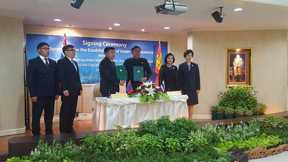 Нийслэлийн Засаг дарга бөгөөд Улаанбаатар хотын Захирагч С.Батболд болон Бангкок хотын дарга, Цагдаагийн генерал Асвин Кванмыанг нар хоёр хотын урт хугацааны найрсаг харилцаа, хамтын ажиллагаа, хот хоорондын харилцан ойлголцлолыг бэхжүүлэх үүднээс ах дүүгийн найрамдалт харилцаа тогтоох хэлэлцээрт гарын үсэг зурлаа.