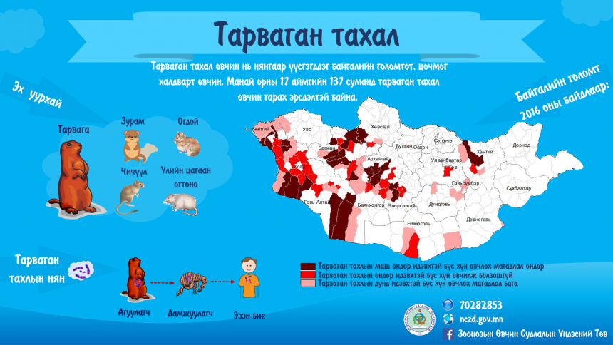 Тарваган тахал өвчний идэвхжлийн улиралчлал эхэлсэнтэй холбогдуулан ард иргэдэд уг өвчнөөс урьдчилан сэргийлэх сэрэмжлүүлэг, мэдээлэл, зөвлөмж хүргэж байна. Хэрэв тарвага, зурам өвчих, мах эвдэх үедээ арьс салстаа гэмтээсэн, бөөс, бүүрэгт хазуулсан тохиолдолд мэргэжлийн байгууллагад хандах шаардлагатайг олон нийтэд анхааруулж байна.